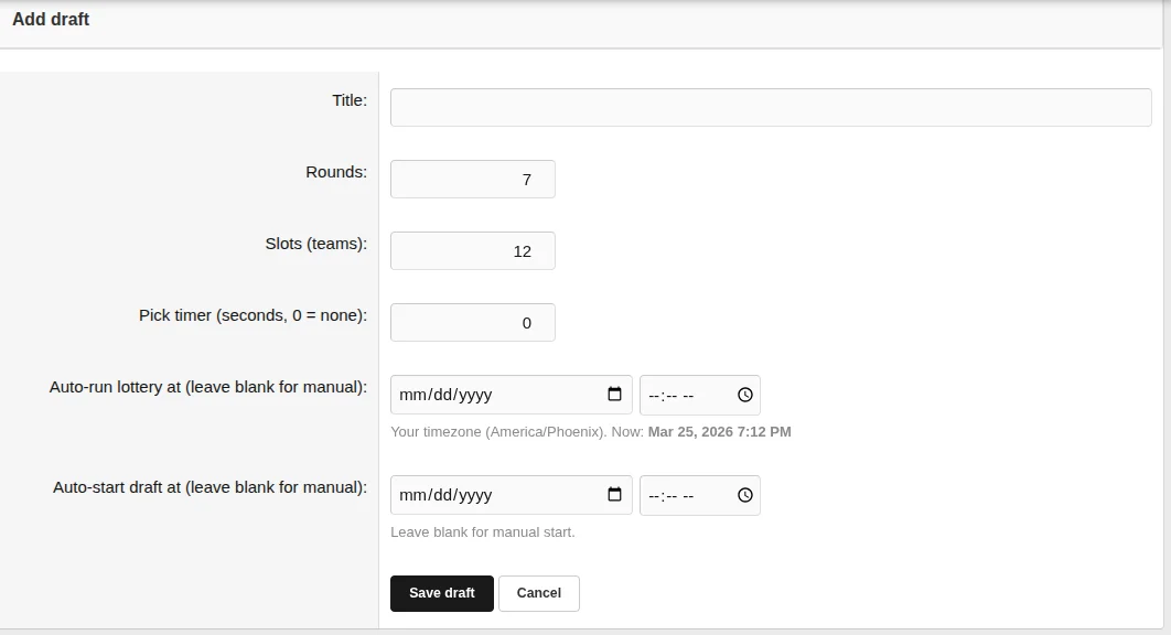 live draft room built directly into your XenForo forum — with real-time WebSocket updates, a pick clock that forces decisions, and a full post-draft report card system where members grade every round of every team's class.